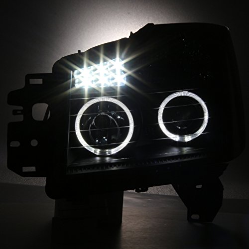 AKKON - For Nissan Titan Armada Black Smoked Lens Dual Ring DRL Daylight LED Projector Headlights Replacement